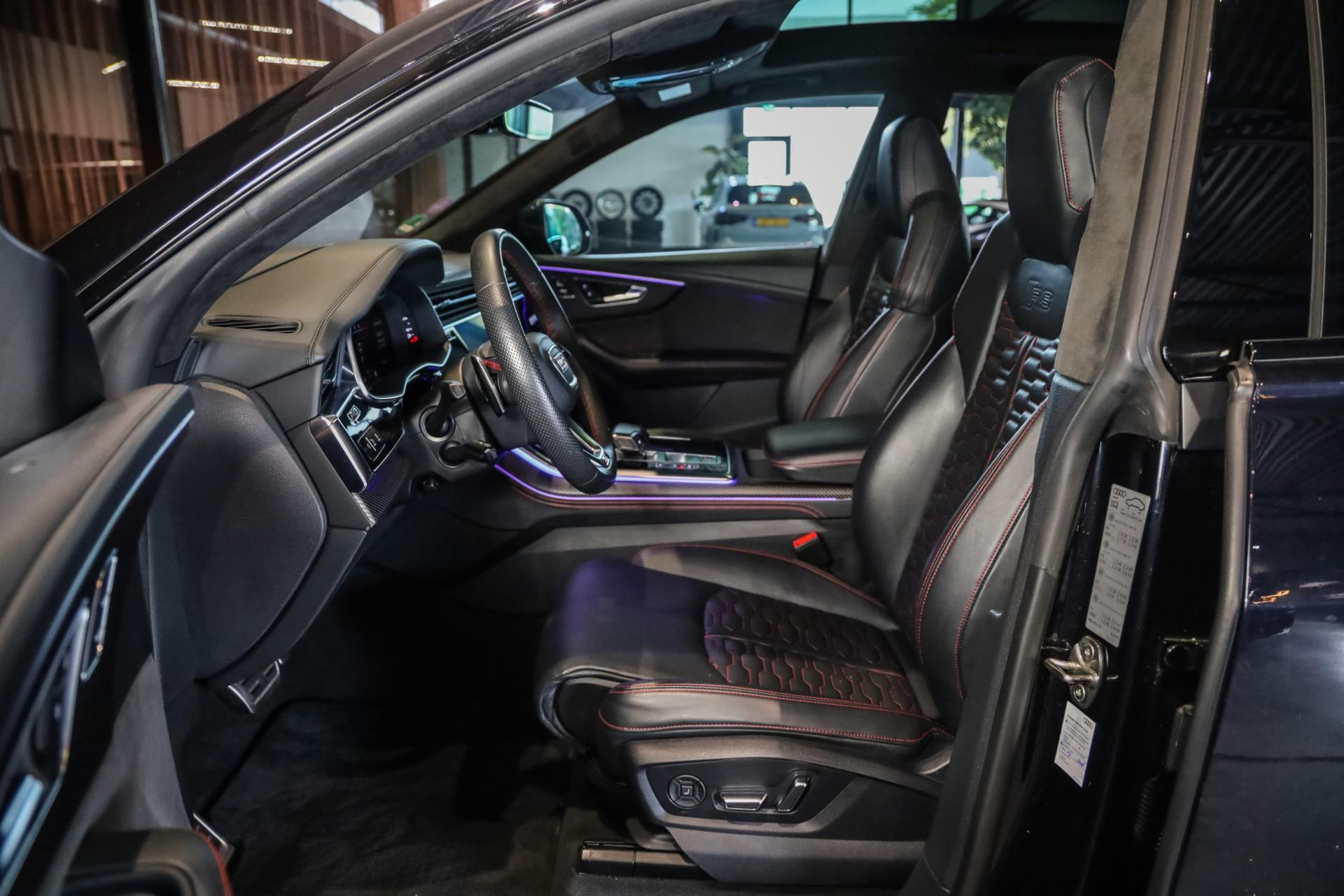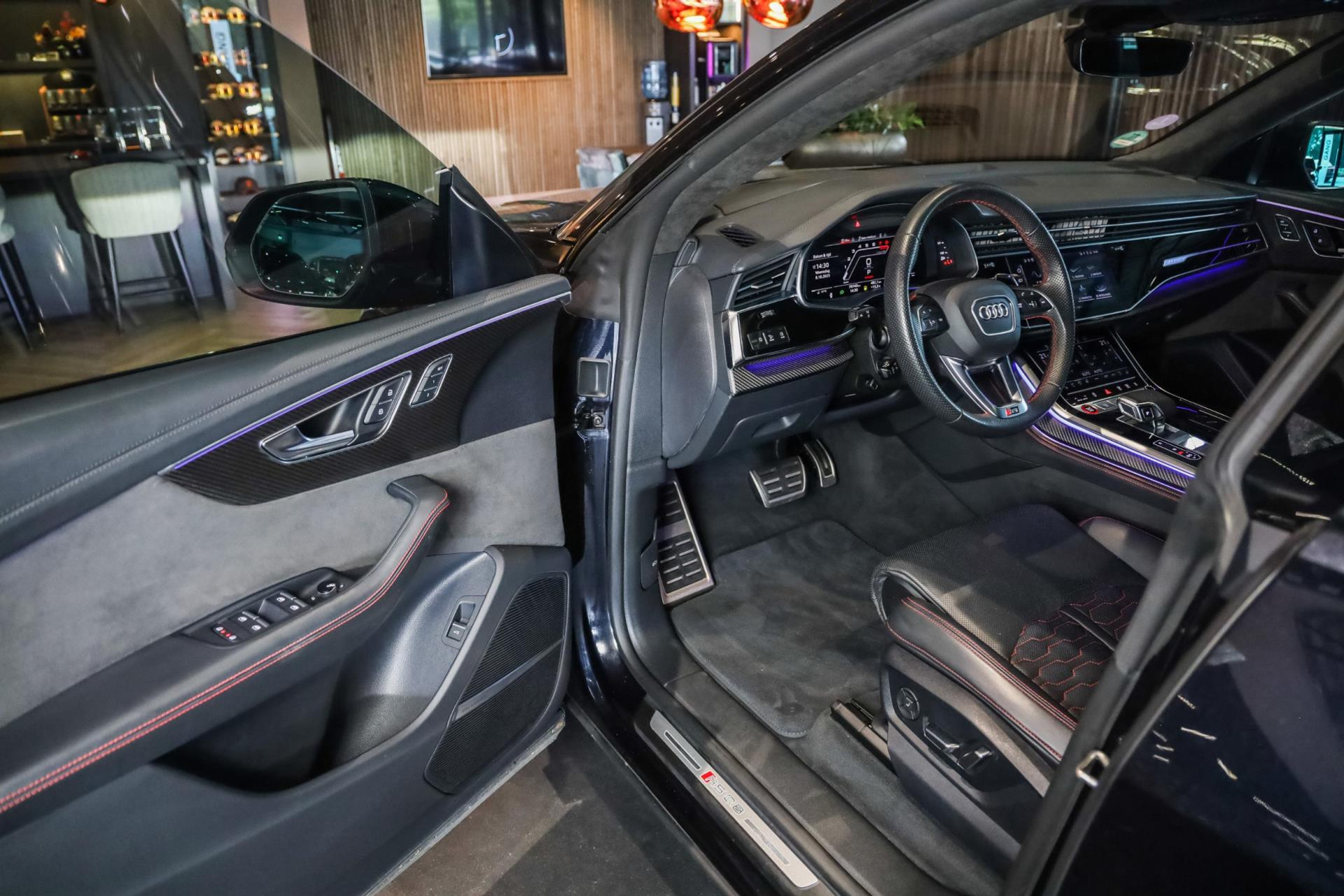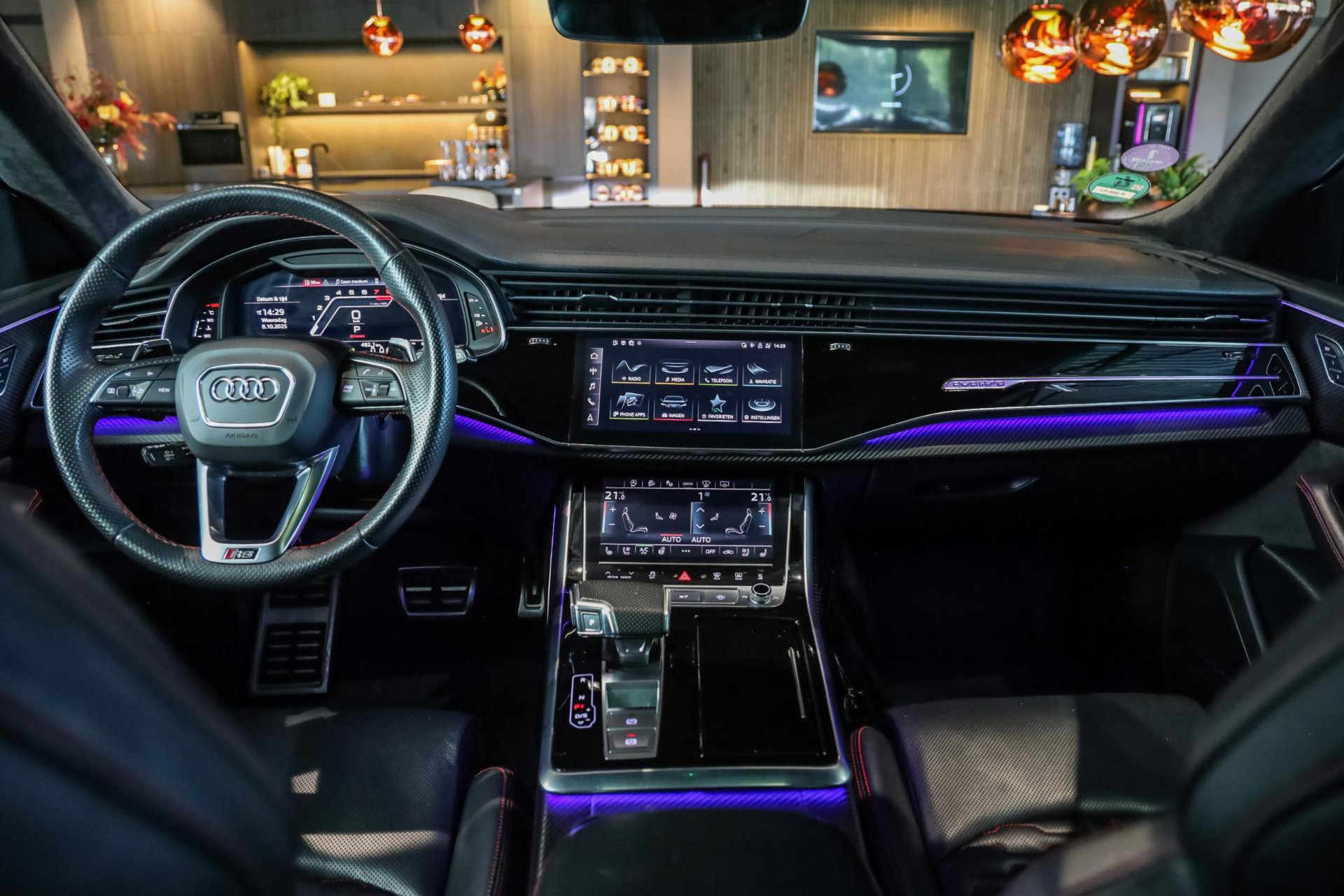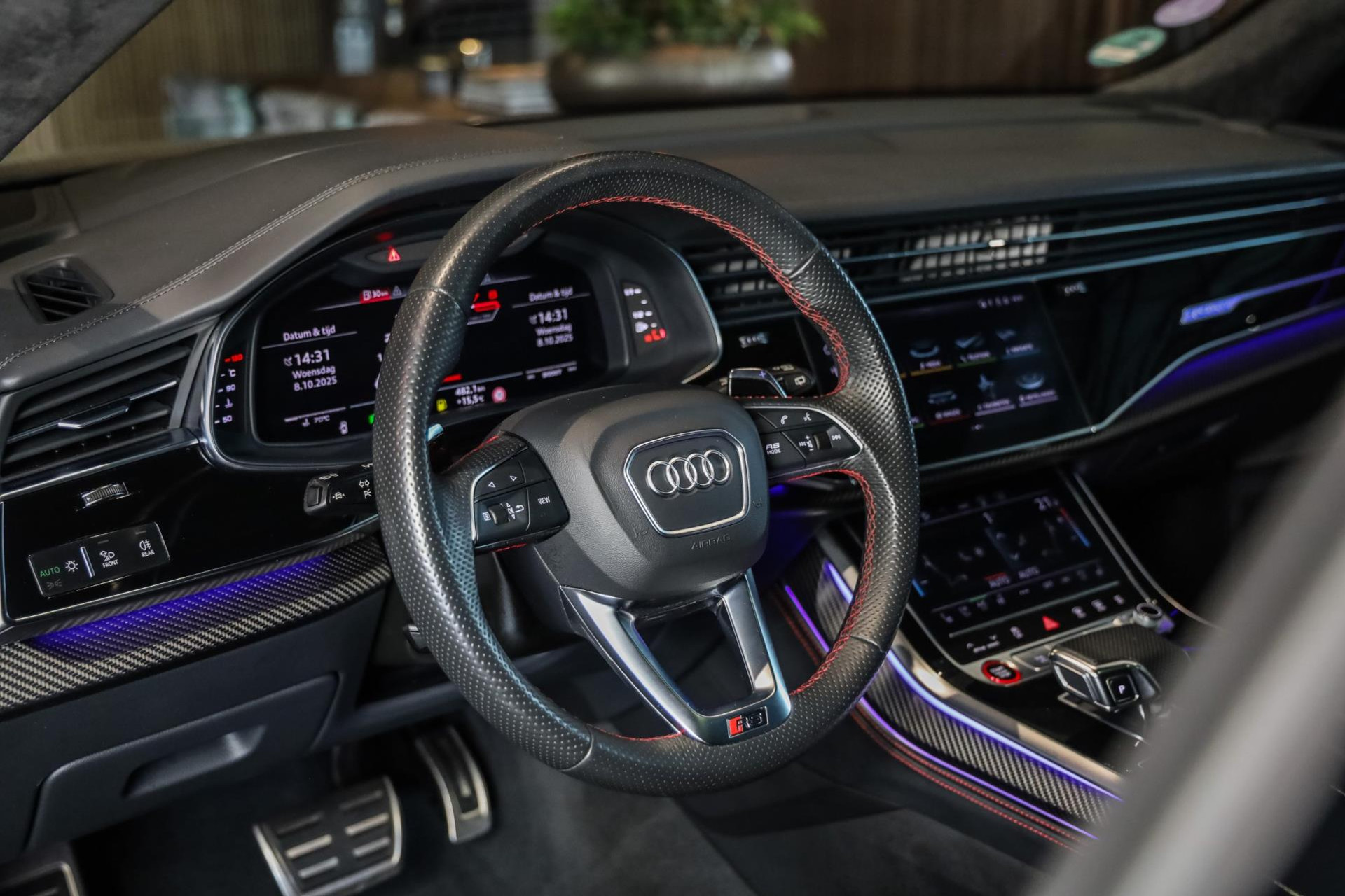 Het betreft hier in nieuwstaat verkerende Audi RSQ8 met vele fabrieksopties zoals: Panoramadak, Super Sportstoelen met Valcona Leder en rode honingraatstiksels, Stoelverwarming + ventilatie, Massage functie voorstoelen, Cruise/Control adaptief, Lane Assist, Dodenhoek detectie, Audi Virtual Cockpit, Audi Drive/Select, 360 Camera, Black Optic Pakket, Head-Up display, Verkeerstekenherkenning, Lederen dashboard + deurpanelen, 23'' Rotor velgen in Zwart, Bang & Olufsen Premium Sound System with 3D sound, RS keramische remschijven met rode remzadels, Elektrische trekhaak, Keyless-Entry/Start, Interieur voorverwarming, DAB tuner, Alcantara dakhemel Zwart, Etc, Etc. Nieuwprijs Nederland bedraagt ruim €255.000,-.