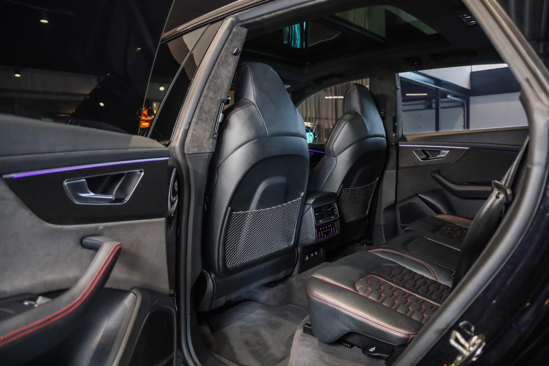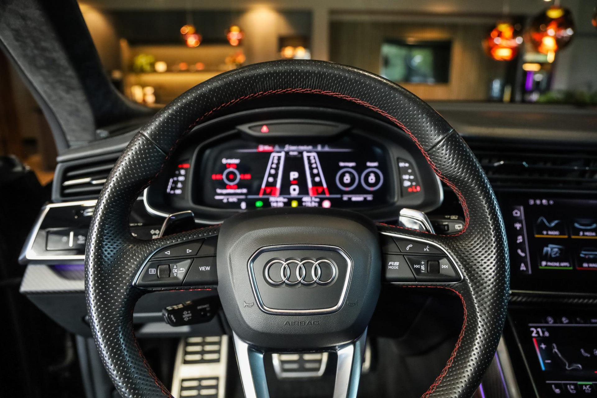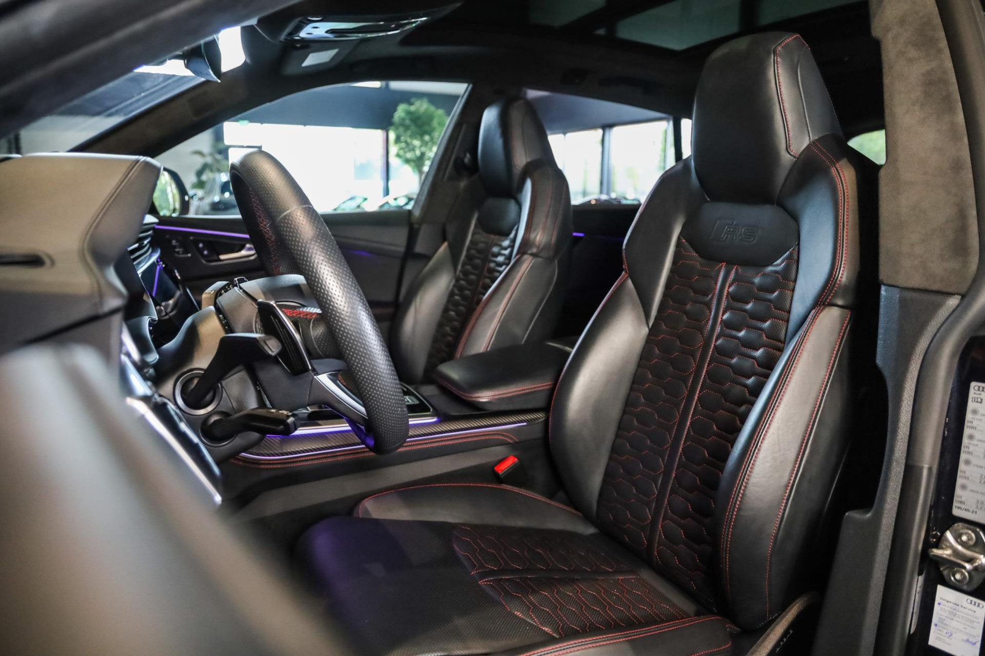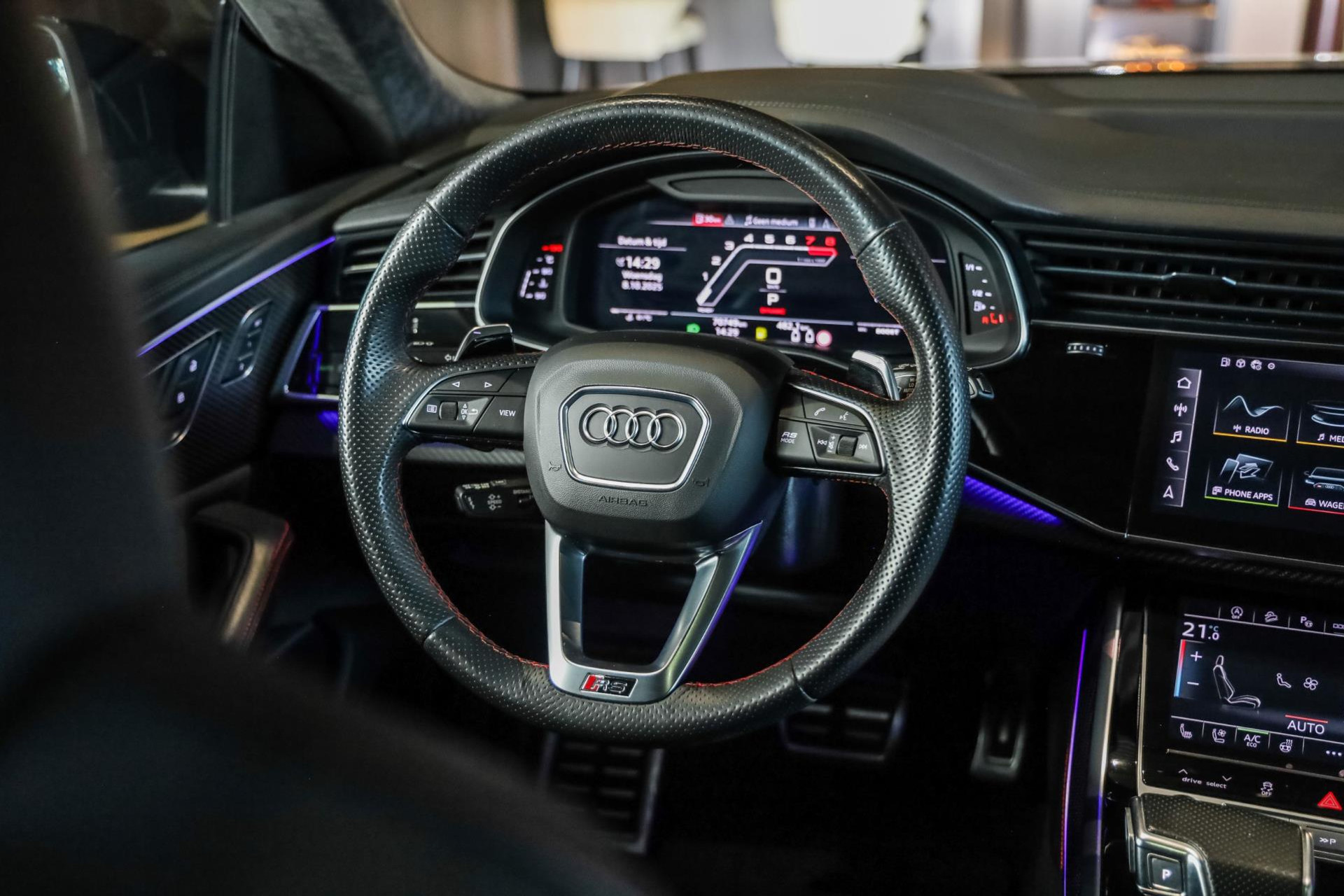 Het betreft hier in nieuwstaat verkerende Audi RSQ8 met vele fabrieksopties zoals: Panoramadak, Super Sportstoelen met Valcona Leder en rode honingraatstiksels, Stoelverwarming + ventilatie, Massage functie voorstoelen, Cruise/Control adaptief, Lane Assist, Dodenhoek detectie, Audi Virtual Cockpit, Audi Drive/Select, 360 Camera, Black Optic Pakket, Head-Up display, Verkeerstekenherkenning, Lederen dashboard + deurpanelen, 23'' Rotor velgen in Zwart, Bang & Olufsen Premium Sound System with 3D sound, RS keramische remschijven met rode remzadels, Elektrische trekhaak, Keyless-Entry/Start, Interieur voorverwarming, DAB tuner, Alcantara dakhemel Zwart, Etc, Etc. Nieuwprijs Nederland bedraagt ruim €255.000,-.