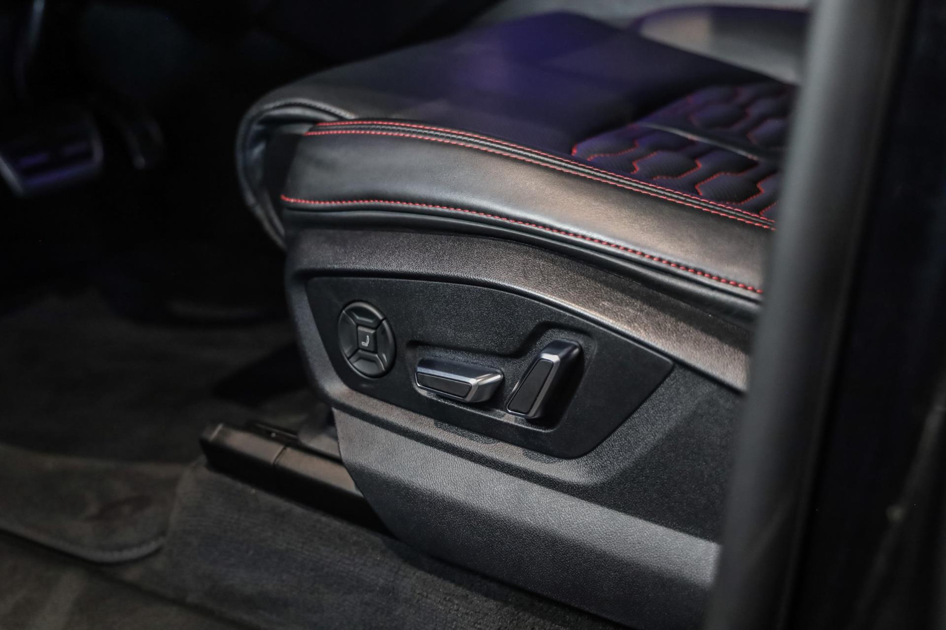 - RS-Sportstoelen voor met ruitenstiksel met Logo-afdruk in voorstoelleuningen