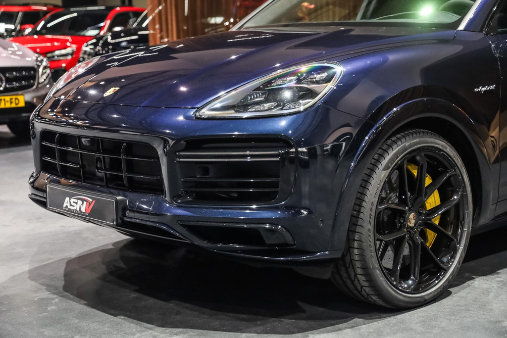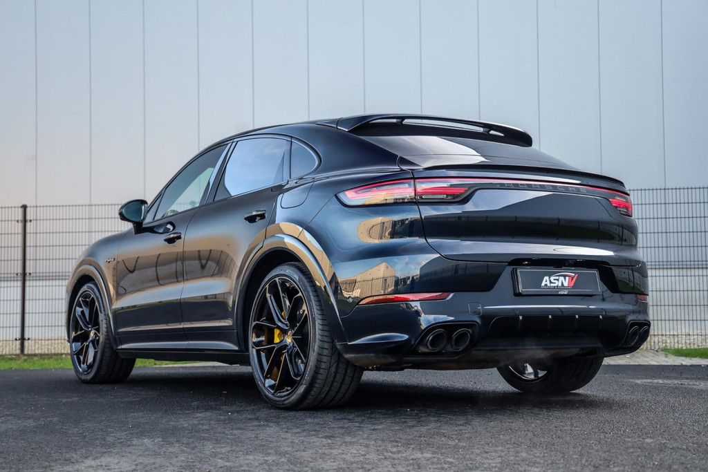 Deze Porsche Cayenne Coupé 4.0 Turbo S E-Hybrid verkeert in absolute nieuwstaat en is voorzien van alle denkbare fabrieksopties zoals: Adaptieve Sportstoelen incl. Stoelverstelling 18-wegs, Zwart alcantara dakhemel, Burmester sound systeem, PCM module inclusief navigatie (grootbeeld touchscreen) en Apple Car Play, Sport Design pakket in hoogglans Zwart, Grille en sierlijsten in hoogglans Zwart, Porsche Car Connect incl, Matrix LED Porsche Dynamic Light Systeem Plus (PDLS+) in Zwart, Adaptieve luchtvering met niveauregeling en hoogteverstelling inclusief Porsche Active Suspension Management (PASM), Panoramadak volledig glas, DAB +, Achteruitrijcamera met Surround View, Sport-uitlaatsysteem met ronde uitlaatpijpen in Zwart, Stoelverwarming voor + achter, Stoelventilatie voor, LED dagrijverlichting, Elektrische achterklep, Rijstrookwissel-assistent, Cruise/Control adaptief met afstand, Dodehoek assist, Achterramen verduisterd, Buitenspiegel Sport Design Carbon, Stuur verwarmbaar (GT Sport / Alcantara) met Multifunctie en Schakelfunctie, Stuurbekrachtiging Plus (snelheidsafhankelijk), Voorruit verwarmbaar, Trekhaak elektrische uitklapbaar, Zonnescherm aan Zijruiten achter, elektrisch, Wielkastverbredingen gespoten, Stuurbekrachtiging plus met vierwielbesturing, Soft Close portieren, Nachtzicht-assistent, Head-Up Display, Lichtmetalen velgen 21'' (Cayenne Exclusive Design Wiel, hoogglans Zwart gespoten), Keramisch remsysteem (Porsche Ceramic Composite Brake, PCCB) inclusief remzadels Geel gespoten, Ionisator voor de luchtreiniging, Home-Link (Garagedeuropener), Comfort-toegang (Keyless Portierontgrendeling), Achterbanksysteem (2+1 Zitplaatsen), Beglazing achter verduisterd (Privacybeglazing) incl. Warmtewerend glas geluidsisolerend, Inductielaadstation voor Smartphone (Wireless Charging), Modelaanduiding gespoten in Zwart, Etc, Etc.