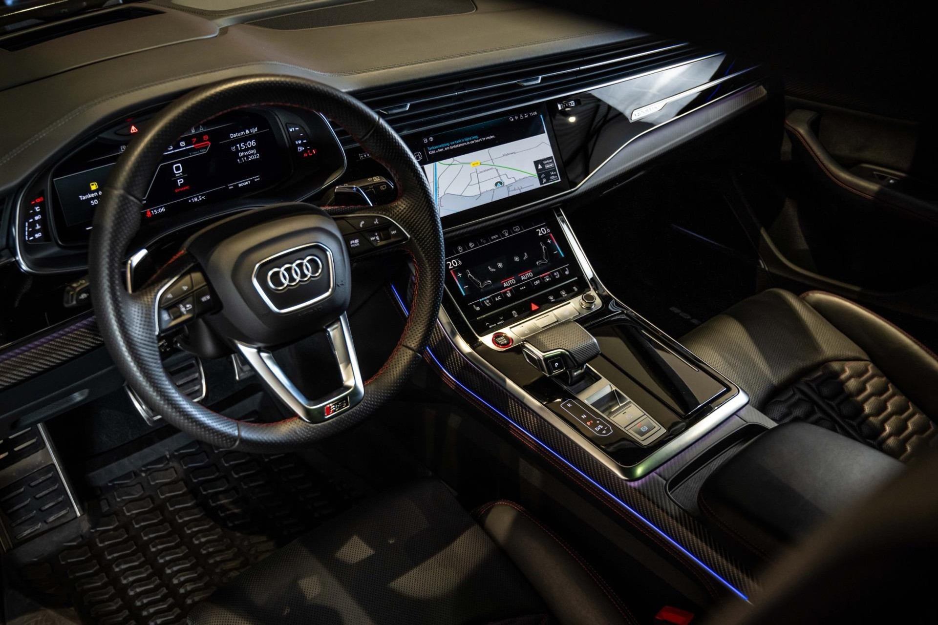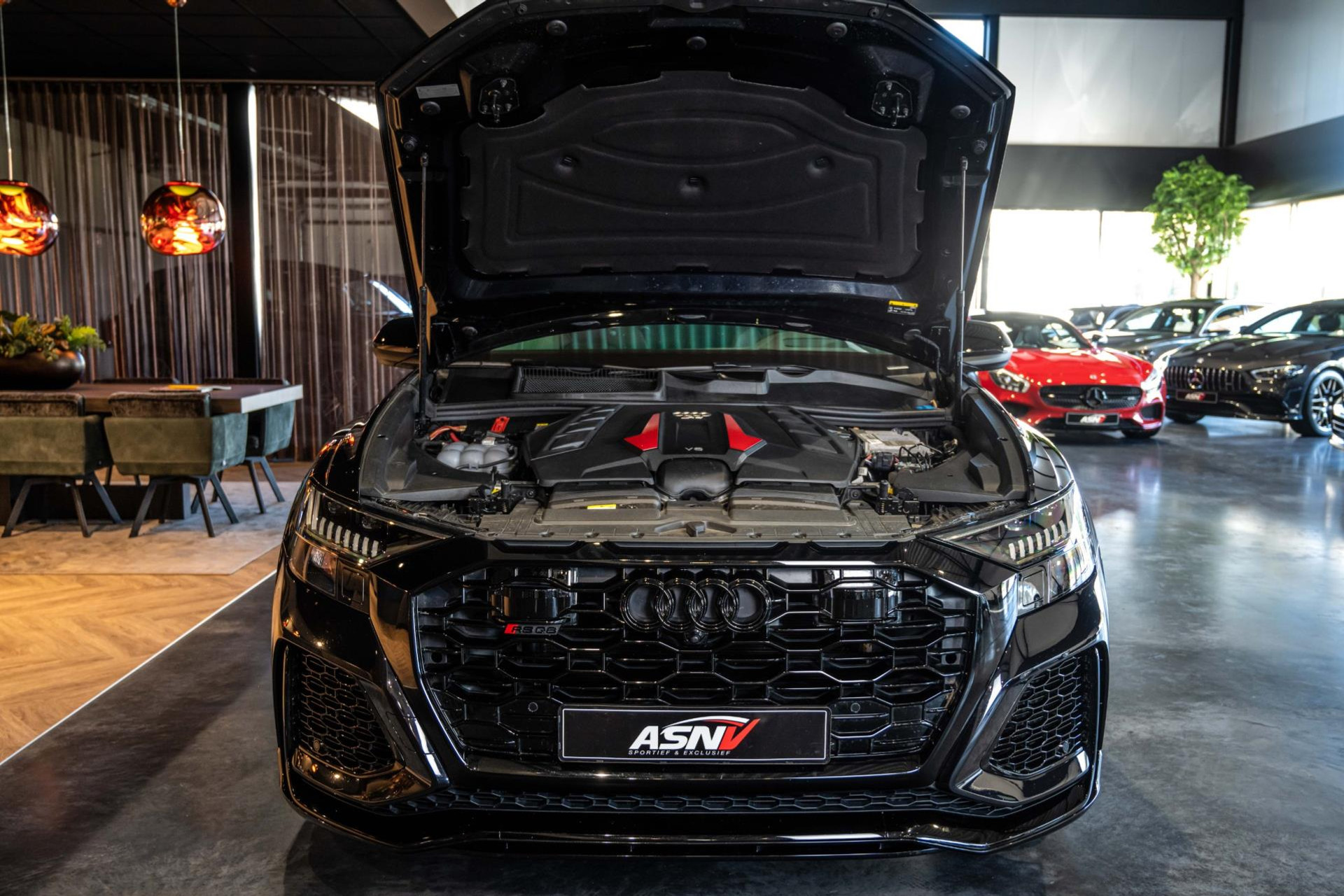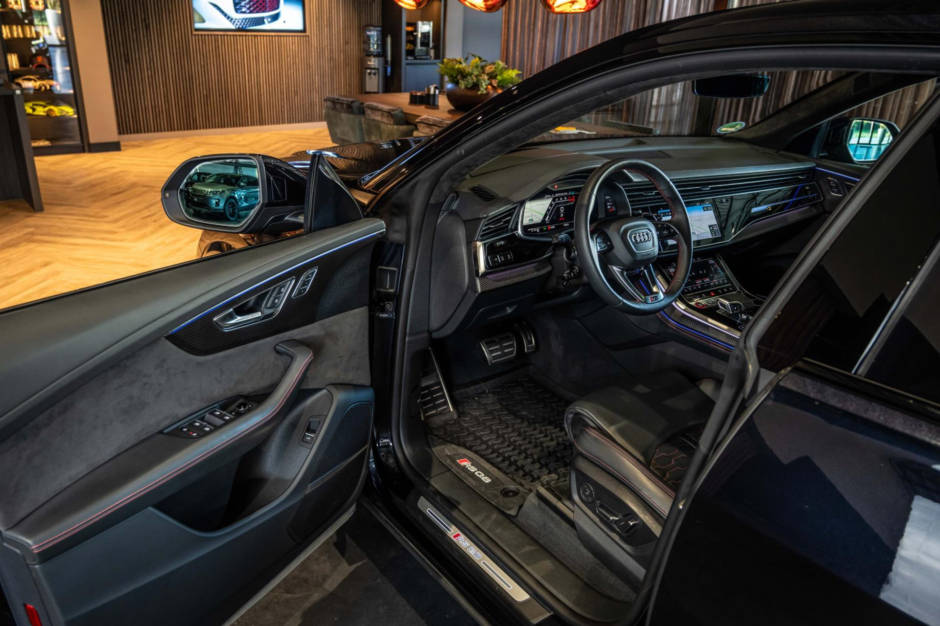 Het betreft hier in nieuwstaat verkerende Audi RSQ8 met vele fabrieksopties zoals: Panoramadak, Super Sportstoelen met Valcona Leder en rode honingraatstiksels, Stoelverwarming + ventilatie, Massage functie voorstoelen, Cruise/Control adaptief, Lane Assist, Dodenhoek detectie, Audi Virtual Cockpit, Audi Drive/Select, 360 Camera, Black Optic Pakket, Head-Up display, Verkeerstekenherkenning, Lederen dashboard + deurpanelen, 23'' Rotor velgen in Zwart, Bang & Olufsen Premium Sound System with 3D sound, RS keramische remschijven met rode remzadels, Elektrische trekhaak, Keyless-Entry/Start, Interieur voorverwarming, DAB tuner, Alcantara dakhemel Zwart, Etc, Etc. Nieuwprijs Nederland bedraagt ruim €255.000,-.