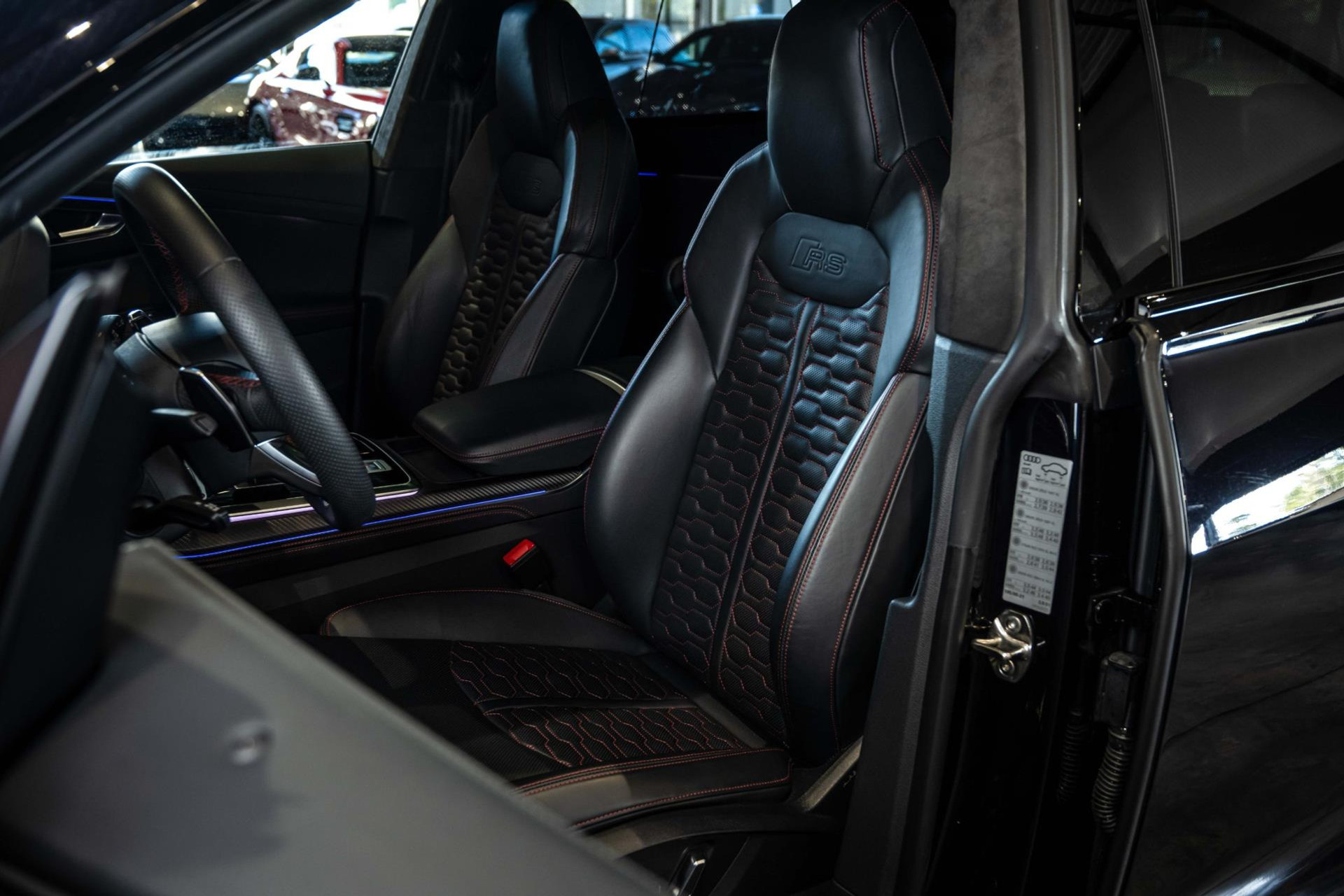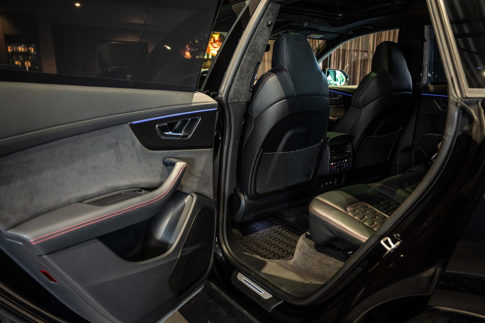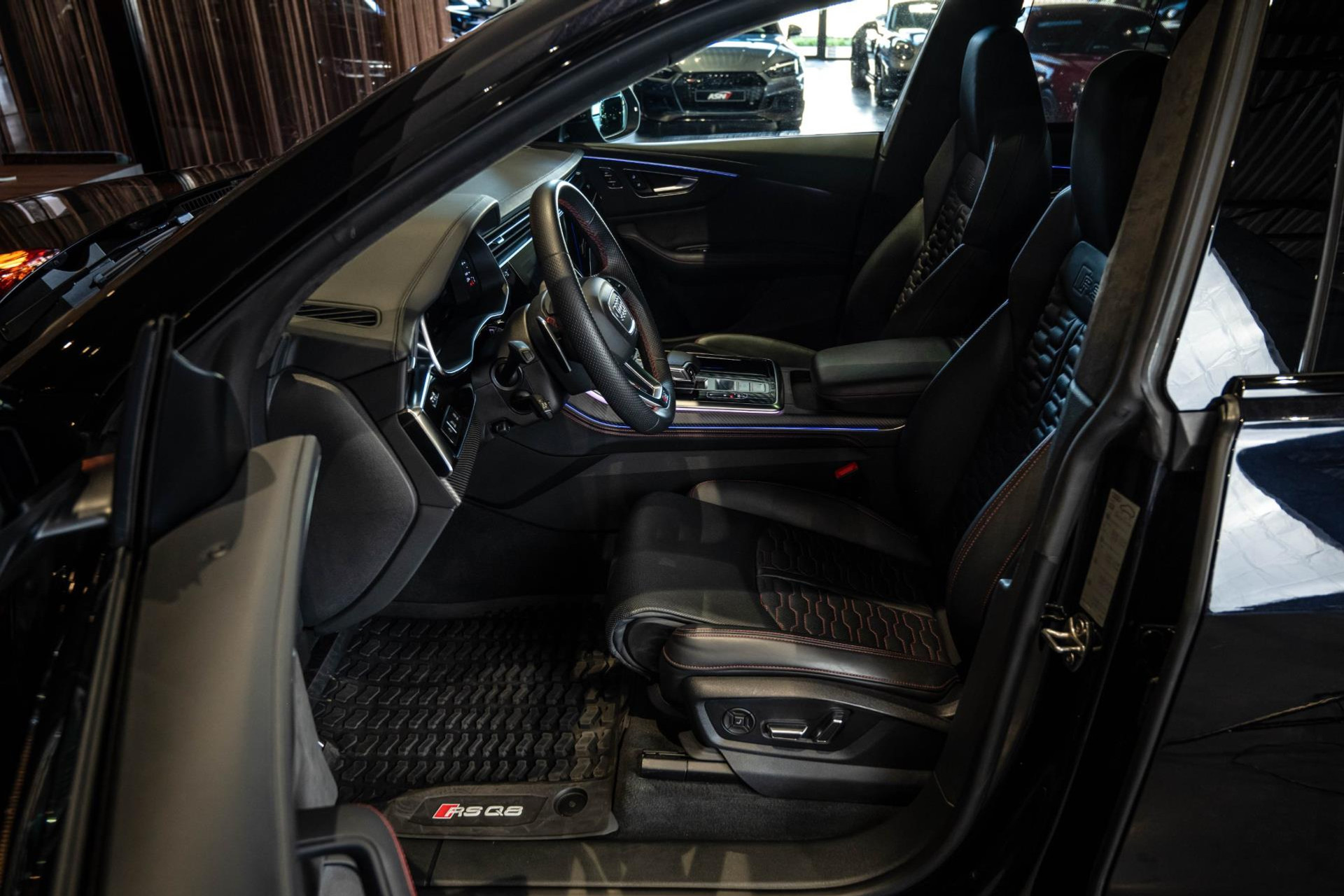 Het betreft hier in nieuwstaat verkerende Audi RSQ8 met vele fabrieksopties zoals: Panoramadak, Super Sportstoelen met Valcona Leder en rode honingraatstiksels, Stoelverwarming + ventilatie, Massage functie voorstoelen, Cruise/Control adaptief, Lane Assist, Dodenhoek detectie, Audi Virtual Cockpit, Audi Drive/Select, 360 Camera, Black Optic Pakket, Head-Up display, Verkeerstekenherkenning, Lederen dashboard + deurpanelen, 23'' Rotor velgen in Zwart, Bang & Olufsen Premium Sound System with 3D sound, RS keramische remschijven met rode remzadels, Elektrische trekhaak, Keyless-Entry/Start, Interieur voorverwarming, DAB tuner, Alcantara dakhemel Zwart, Etc, Etc. Nieuwprijs Nederland bedraagt ruim €255.000,-.