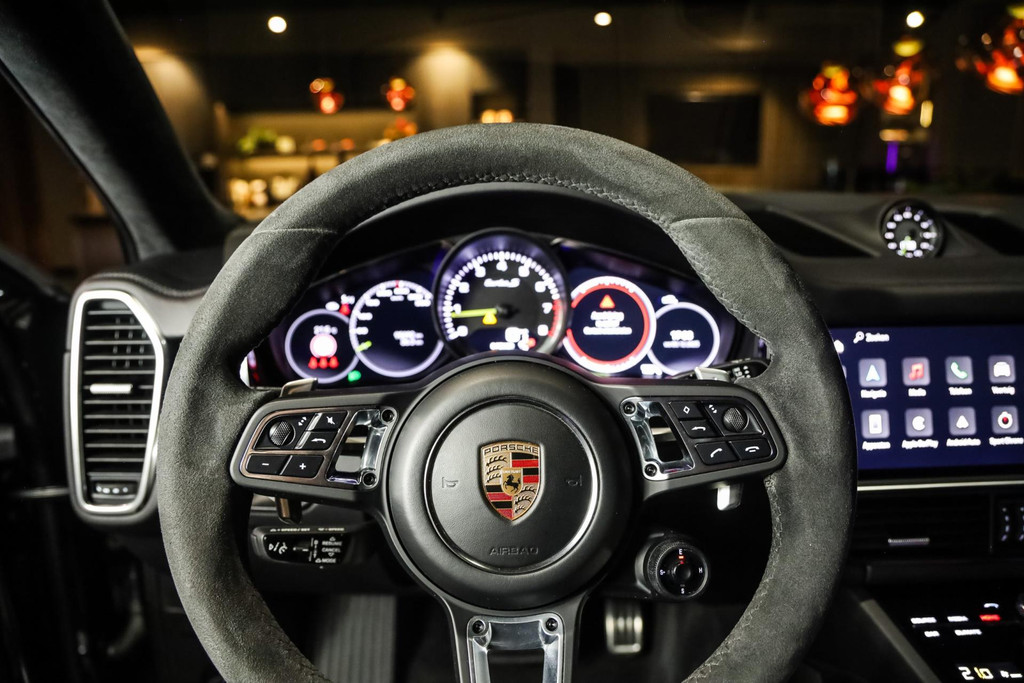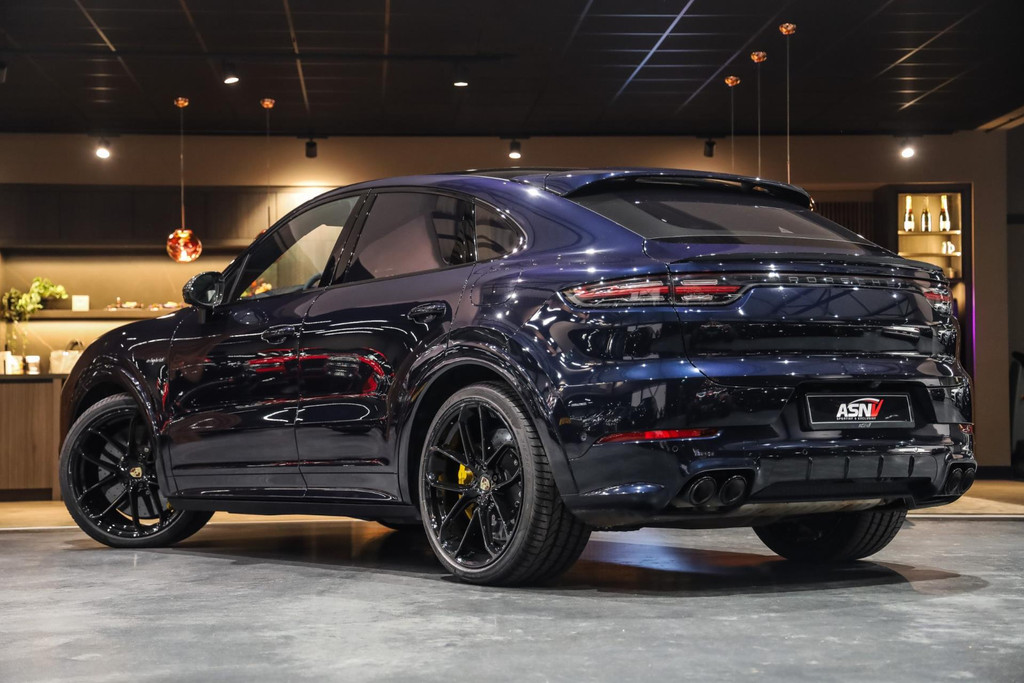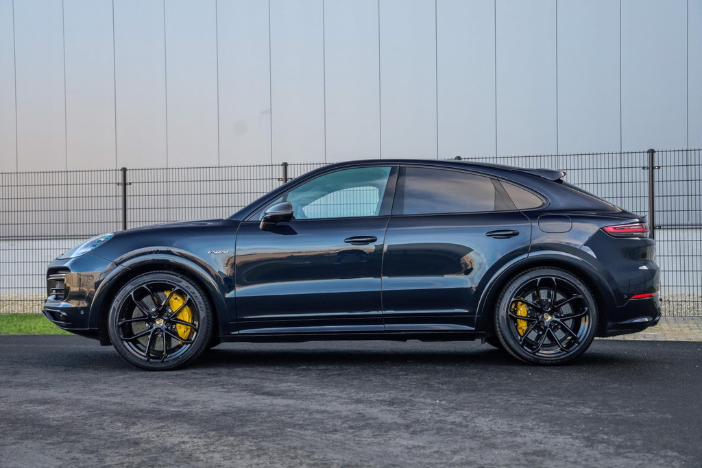 Deze Porsche Cayenne Coupé 4.0 Turbo S E-Hybrid verkeert in absolute nieuwstaat en is voorzien van alle denkbare fabrieksopties zoals: Adaptieve Sportstoelen incl. Stoelverstelling 18-wegs, Zwart alcantara dakhemel, Burmester sound systeem, PCM module inclusief navigatie (grootbeeld touchscreen) en Apple Car Play, Sport Design pakket in hoogglans Zwart, Grille en sierlijsten in hoogglans Zwart, Porsche Car Connect incl, Matrix LED Porsche Dynamic Light Systeem Plus (PDLS+) in Zwart, Adaptieve luchtvering met niveauregeling en hoogteverstelling inclusief Porsche Active Suspension Management (PASM), Panoramadak volledig glas, DAB +, Achteruitrijcamera met Surround View, Sport-uitlaatsysteem met ronde uitlaatpijpen in Zwart, Stoelverwarming voor + achter, Stoelventilatie voor, LED dagrijverlichting, Elektrische achterklep, Rijstrookwissel-assistent, Cruise/Control adaptief met afstand, Dodehoek assist, Achterramen verduisterd, Buitenspiegel Sport Design Carbon, Stuur verwarmbaar (GT Sport / Alcantara) met Multifunctie en Schakelfunctie, Stuurbekrachtiging Plus (snelheidsafhankelijk), Voorruit verwarmbaar, Trekhaak elektrische uitklapbaar, Zonnescherm aan Zijruiten achter, elektrisch, Wielkastverbredingen gespoten, Stuurbekrachtiging plus met vierwielbesturing, Soft Close portieren, Nachtzicht-assistent, Head-Up Display, Lichtmetalen velgen 21'' (Cayenne Exclusive Design Wiel, hoogglans Zwart gespoten), Keramisch remsysteem (Porsche Ceramic Composite Brake, PCCB) inclusief remzadels Geel gespoten, Ionisator voor de luchtreiniging, Home-Link (Garagedeuropener), Comfort-toegang (Keyless Portierontgrendeling), Achterbanksysteem (2+1 Zitplaatsen), Beglazing achter verduisterd (Privacybeglazing) incl. Warmtewerend glas geluidsisolerend, Inductielaadstation voor Smartphone (Wireless Charging), Modelaanduiding gespoten in Zwart, Etc, Etc.